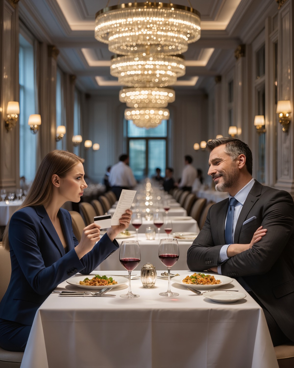 Miejsce zapierało dech w piersiach: kryształowe żyrandole, polerowane srebra, kelnerzy poruszający się z cichą precyzją. Jedzenie było wyśmienite, wręcz zbyt piękne, żeby je zjeść.
