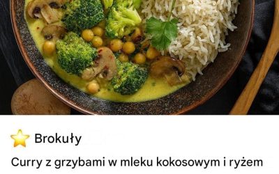 Curry z brokułami i grzybami z mlekiem kokosowym i ryżem basmati doskonale ucieleśnia połączenie nowoczesnej kuchni wegetariańskiej z egzotycznymi smakami…