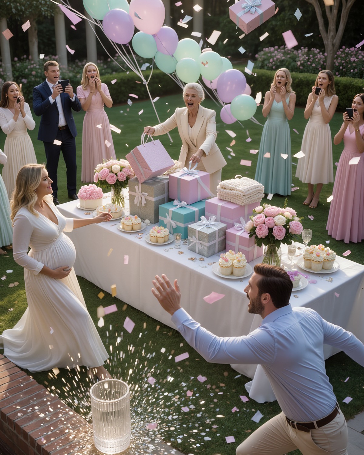 Późnopopołudniowe słońce zalewało ogród Chloe i Marka, malując imprezę delikatnym złotem. Pastelowe balony kołysały się na delikatnym wietrze, a długi stół był zastawiony babeczkami i kanapkami, które wyglądały niemal zbyt idealnie, by je zjeść. Przyjaciele i rodzina zebrali się na trawniku, a ich śmiech był ciepły i radosny.